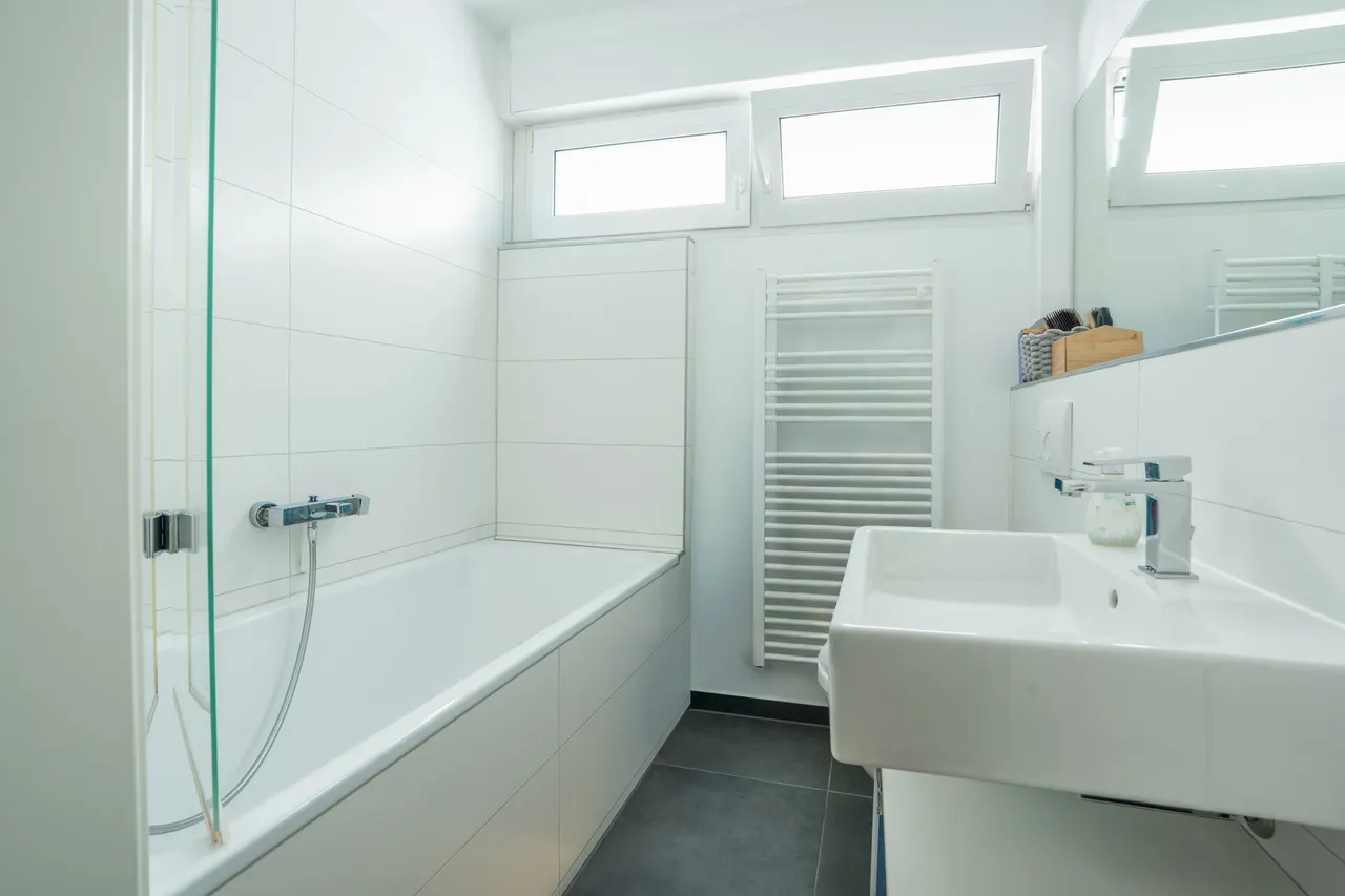 Das Objekt ist aktuell seit 2020 vermietet. Im Inneren erwarten Sie modernisierte Badezimmer inklusive Gäste-WC, hochwertige Vinyl-Bodenbeläge in den Schlafräumen und ein aufgearbeitetes Mosaikparkett im Wohn- und Essbereich, das durch seine Helligkeit und Gemütlichkeit besticht. Die Küche überzeugt mit neuen, stilvollen Fliesen und ist sowohl über den Flur als auch direkt vom Wohnbereich erreichbar. Große Fensterfronten mit Wärmeschutzverglasung und elektrischen Rollläden bieten eine freundliche Wohnatmosphäre und optimalen Komfort.
