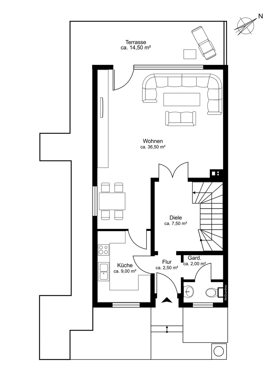 – schöner Gartenbereich mit zusätzlichem Zugang neben der Garage