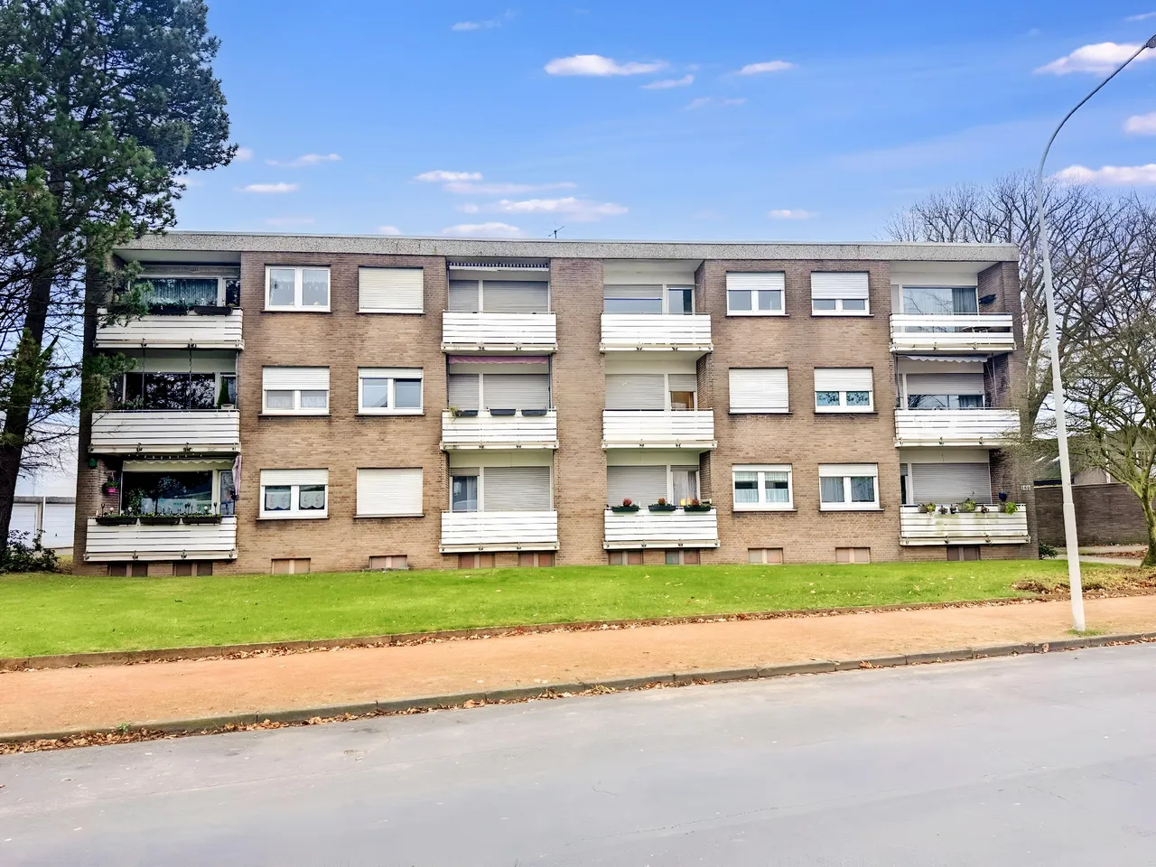 Im Erdgeschoss, 1. Obergeschoss und 2. Obergeschoss befinden sich jeweils 4 Wohnungen. Es handelt sich hierbei um zwei 2-Zimmerwohnungen mit ca. 54 m² und zwei Apartments mit rund 42 m². Alle Wohnungen sind mit einem innenliegenden Wannenbad und einem Balkon ausgestattet.