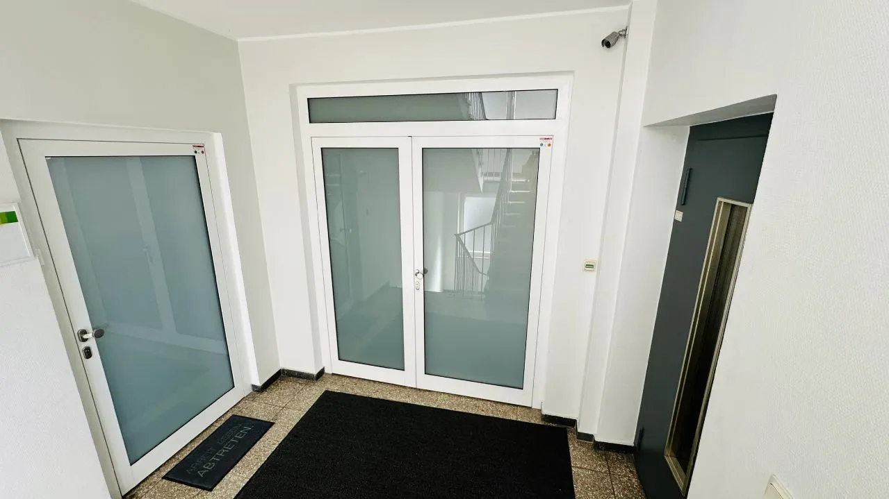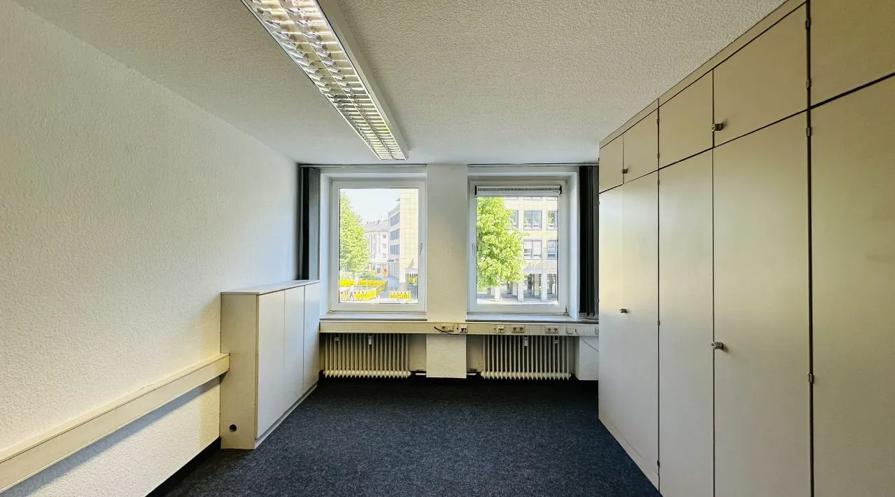Besprechung, Teeküche, Einbauschränke, Nadelfilz, Empfang, 6 Büros, Server-/Kopierraum, weiß gestrichen, DV-Verkabelung, Kabelkanäle, Gegensprechanlage, Kunststofffenster mit Isolierverglasung, Deckenleuchten, Lamellen, Alarmanlage möglich, teilweise elektrische Außenjalousien, Be-/Entlüftung an den Fenstern, öffentliche Stellplätze vor der Tür, neuer Aufzug ab 2025