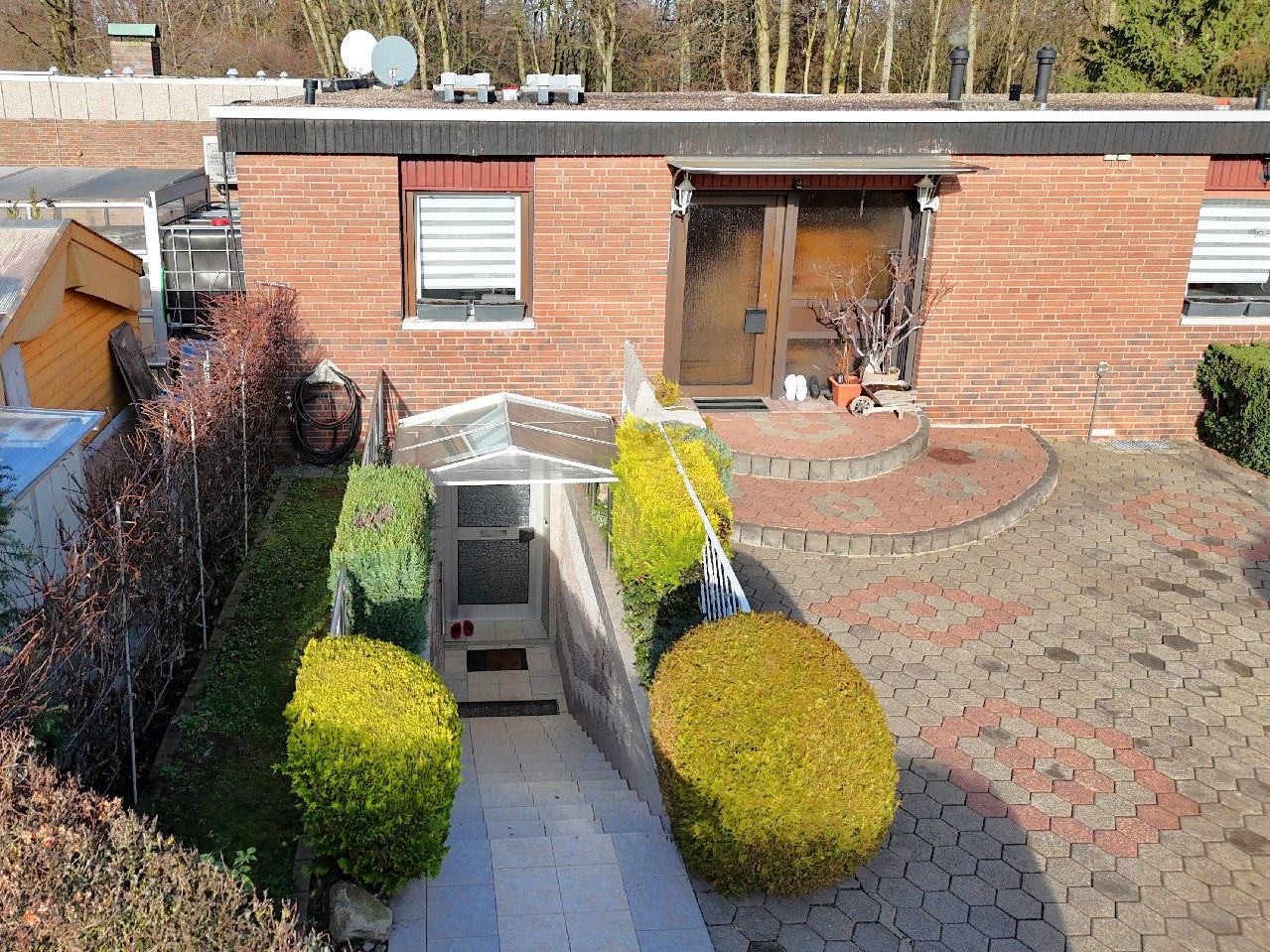 Massiv gebauter 14×14 Meter breiter Reihenbungalow mit zwei separaten Wohneinheiten, der hervorragend auch von einer großen Familie oder zwei Familien bzw. auch von zwei Generationen genutzt werden kann. Im Erd- und Untergeschoss befinden sich jeweils ein großzügiger Wohn-und Essbereich sowie jeweils drei Schlafzimmer so dass genügend Platz für Kinder vorhanden ist.