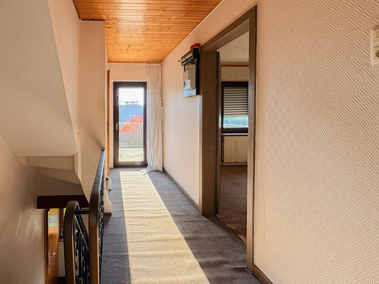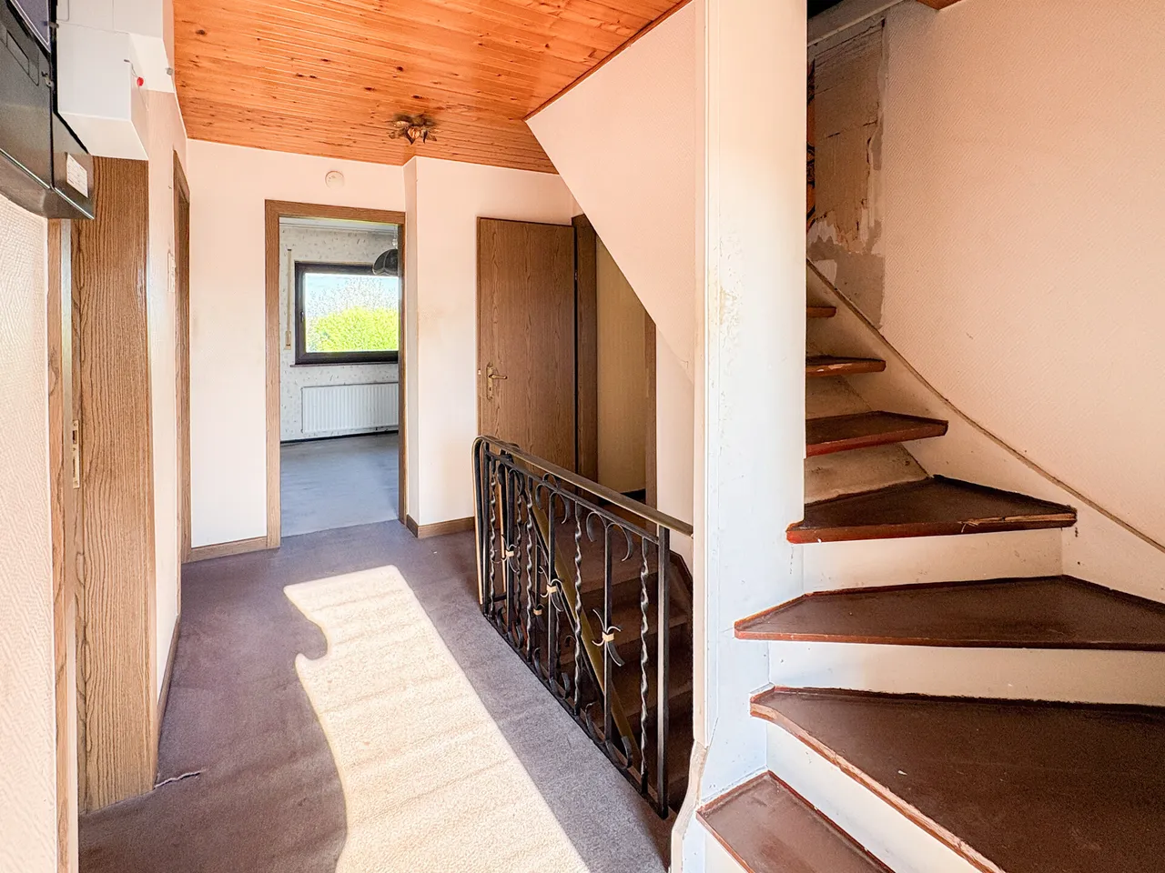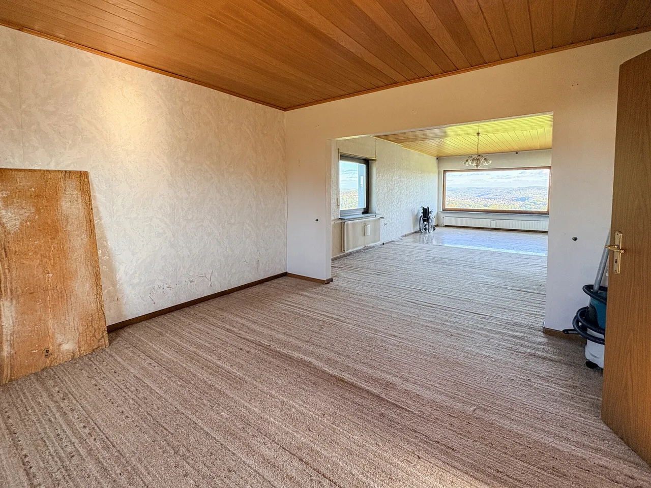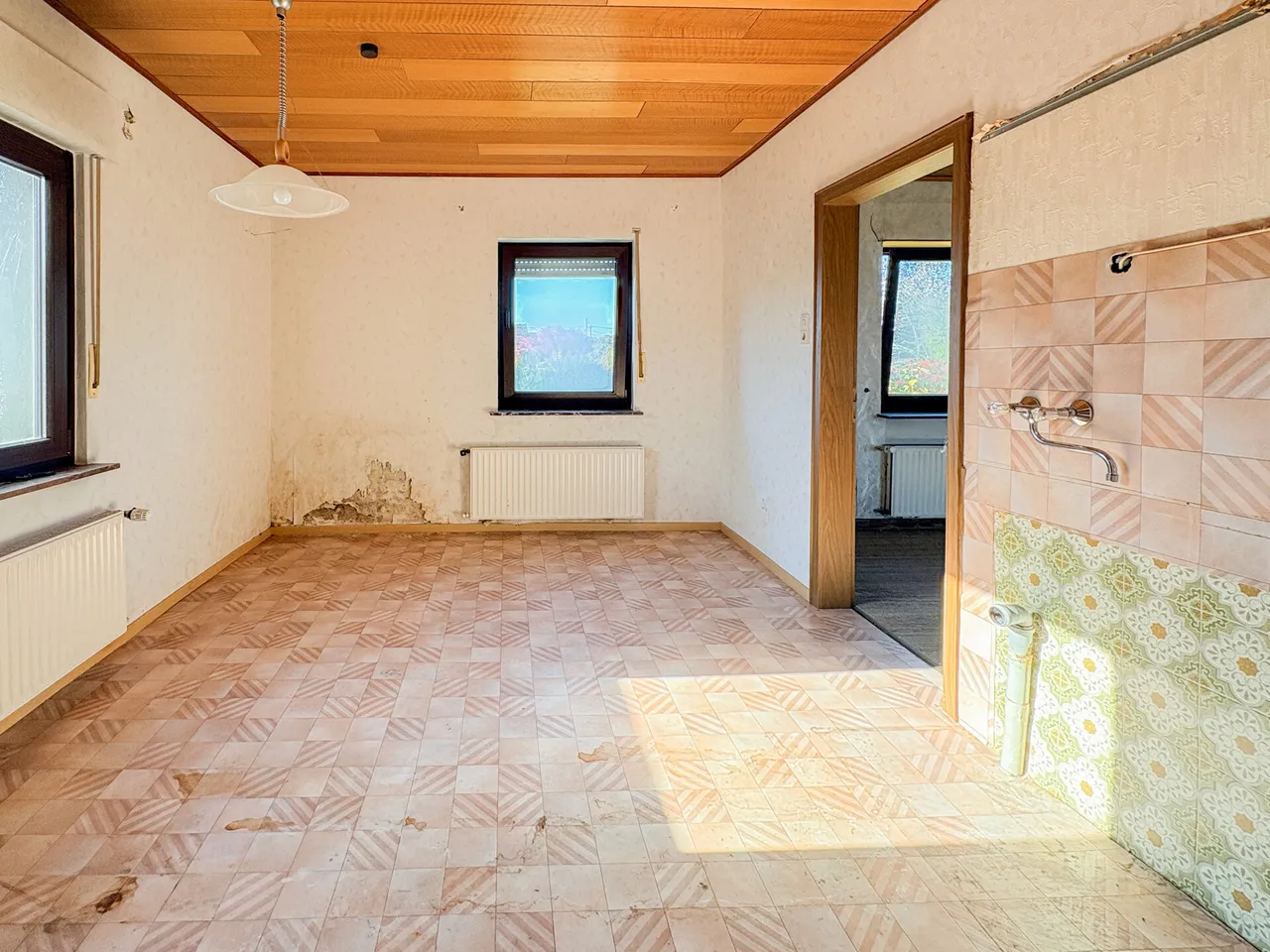 Dieses sanierungsbedürftige Einfamilienhaus bietet die ideale Grundlage für alle, die sich ihren Wohntraum nach eigenen Vorstellungen verwirklichen möchten. Das Haus verfügt im Erdgeschoss über einen großzügigen Wohn- und Essbereich, der durch seine offene Gestaltung und die weitläufige Aussicht besonders beeindruckt. Die Küche bietet ausreichend Platz für eine moderne Neugestaltung. Zudem stehen ein Badezimmer mit Badewanne, ein separates WC und eine Waschküche zur Verfügung. Im Obergeschoss befinden sich drei Zimmer, die sich als Schlafzimmer nutzen lassen. Alle Räume befinden sich in einem sanierungsbedürftigen Zustand. Auch die Elektrik sowie teilweise die Fenster sollten im Zuge der Modernisierung überarbeitet werden.