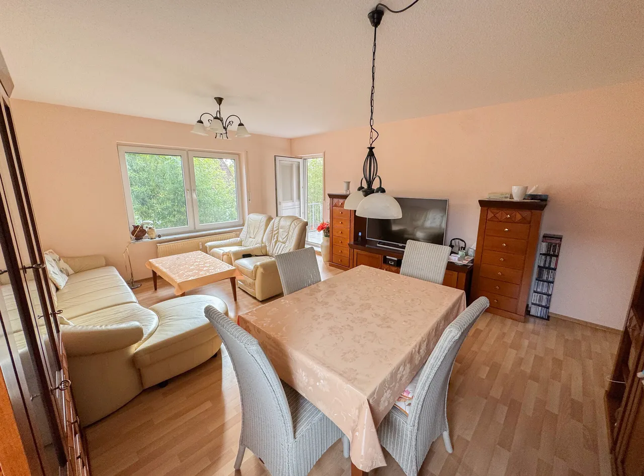 Der großzügige Grundriss integriert eine moderne Einbauküche und ein einladendes Tageslichtbad, das für eine angenehme Wohlfühlatmosphäre sorgt. Der Bodenbelag aus Laminat und Fliesen unterstreicht den modernen sowie gepflegten Zustand der Immobilie. Genießen Sie entspannte Stunden auf dem Balkon. Das 5 Parteien Haus, das auf einem Grundstück von ca. 842 m² erbaut wurde, ist unterkellert und in massiver Bauweise errichtet. Dies verleiht der Wohnung eine solide Wertbeständigkeit. Ein Garagenstellplatz sowie ein Außenstellplatz runden das Angebot ab.