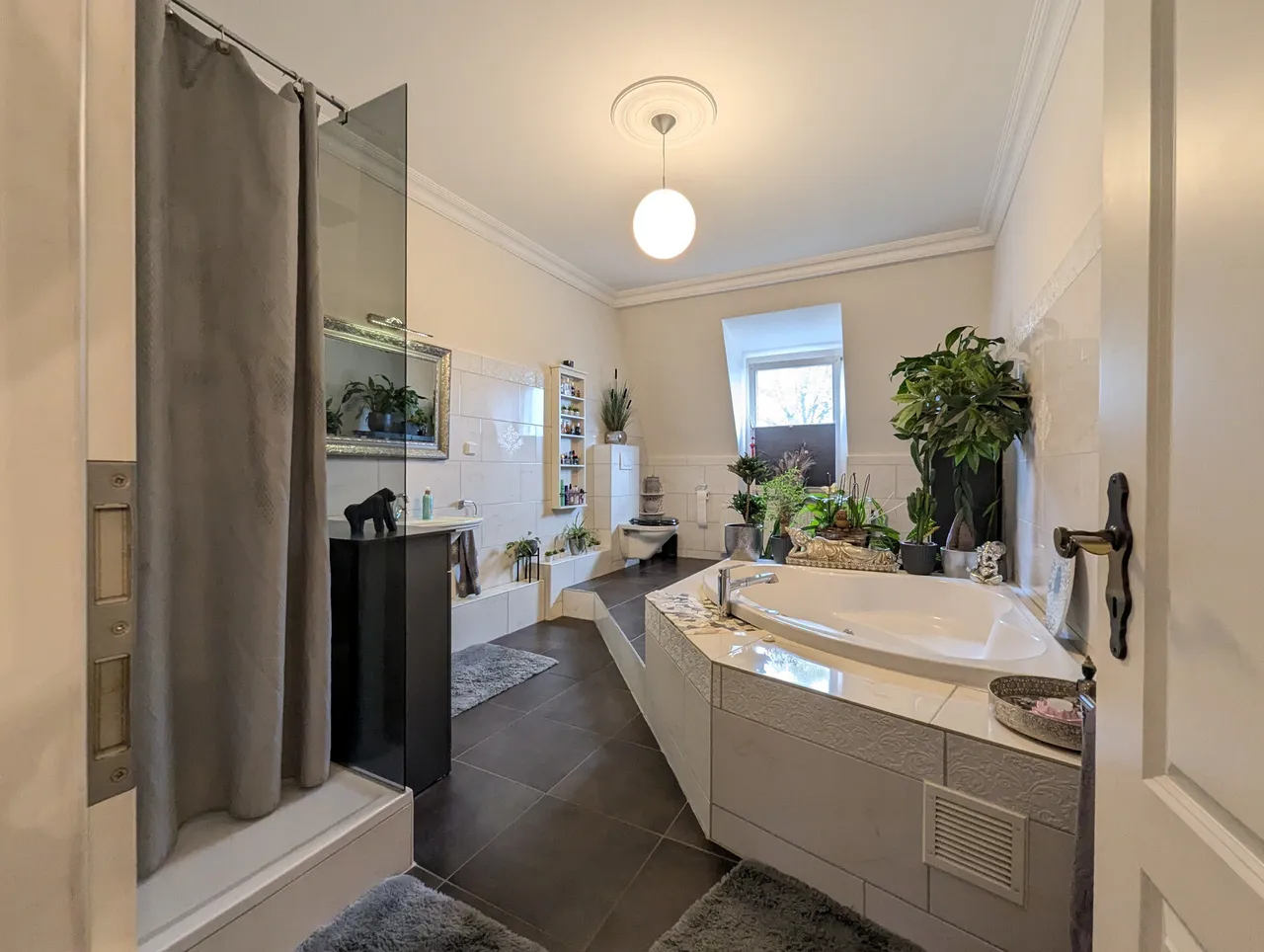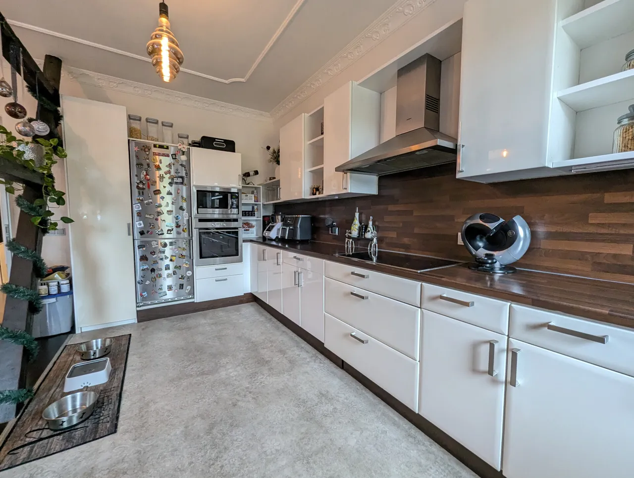 Diese Wohnung verbindet historische Elemente mit modernen Annehmlichkeiten und schafft so ein Wohngefühl der besonderen Art.