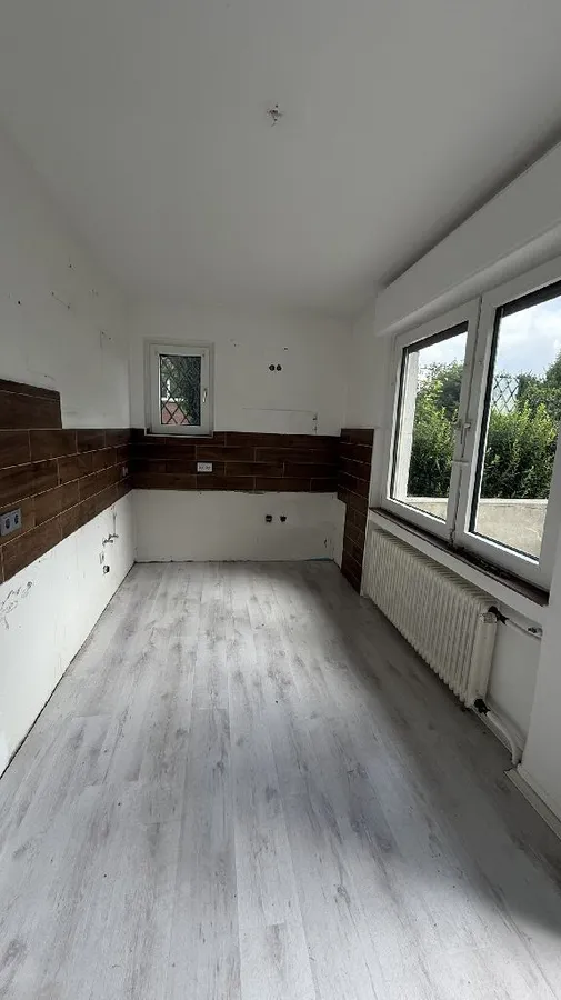 3/4 Zimmer, Schlaf- und Kindezimmer, Wohn-/Esszimmer, Küche, Bad, Terrasse, renovierungsbedürftig.
