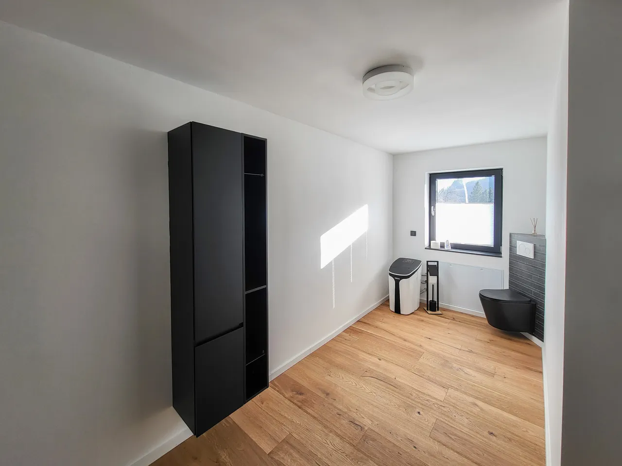 Im Erdgeschoss betreten Sie über eine lichtdurchflutete Diele das hochwertig ausgestattete Badezimmer mit großzügiger Walk-in-Dusche, das Schlafzimmer sowie den Hauswirtschaftsraum. Badezimmer und Schlafzimmer sind durch edle Echtholz-Schiebetüren von der Diele abgetrennt und unterstreichen den hochwertigen Charakter des Hauses.