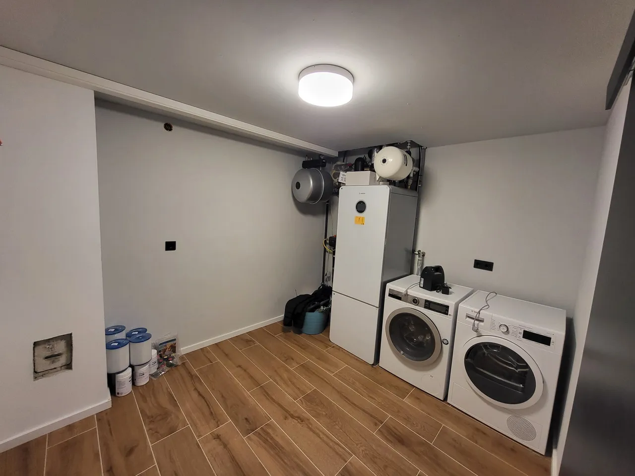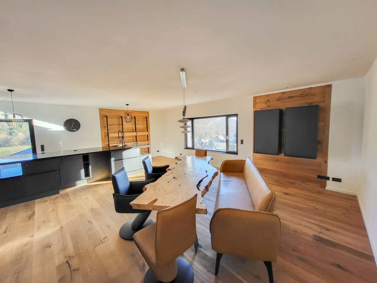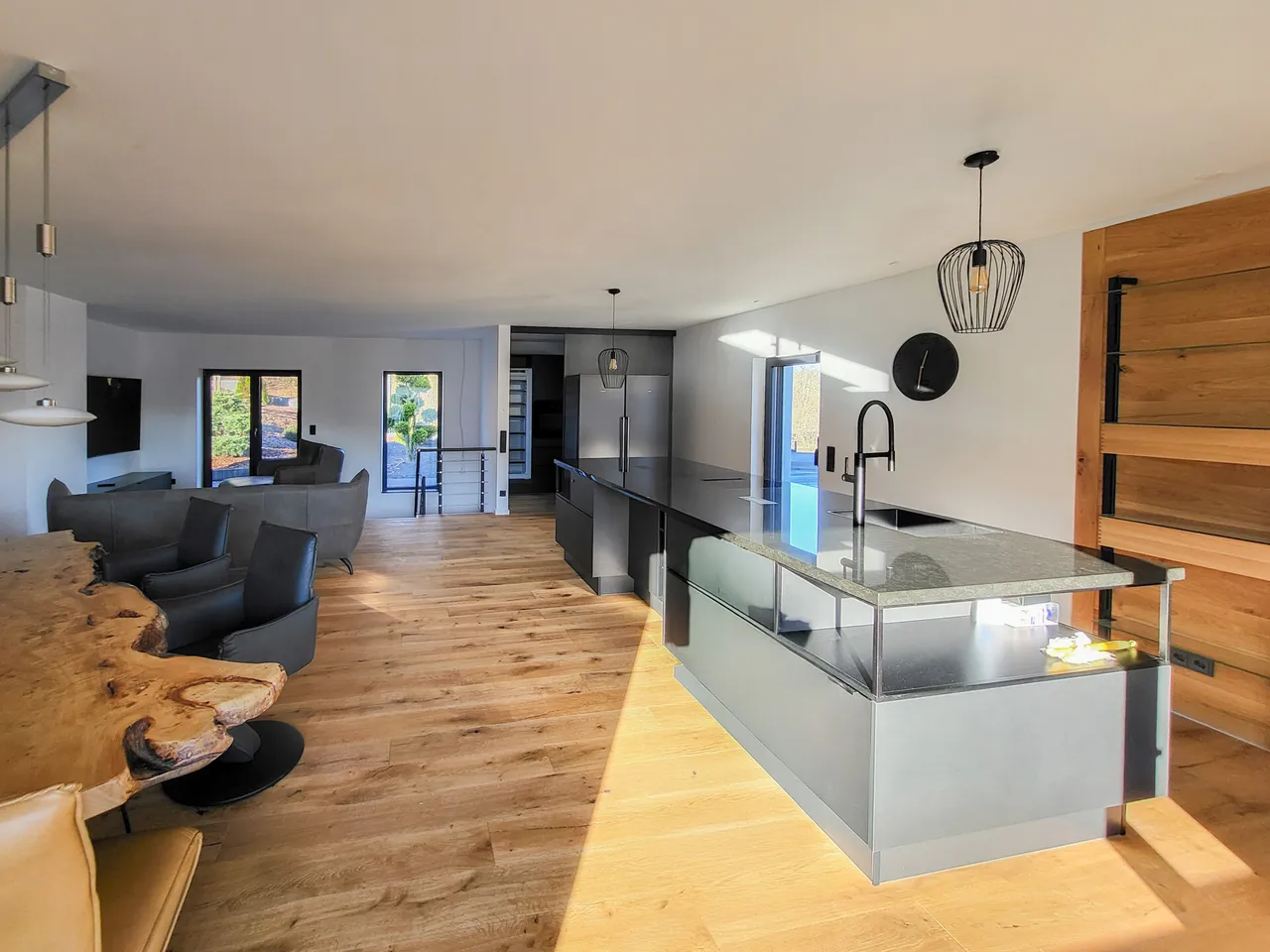 Im Essbereich bestehen ideale Voraussetzungen für einen Anbau. Darüber hinaus lässt sich im aktuellen Wohnbereich problemlos ein weiterer Schlafraum realisieren. Von der Terrasse aus genießen Sie einen faszinierenden Ausblick. Zudem befindet sich dort ein Swimspa mit Whirlpool und Gegenstromanlage, das für entspannte Stunden sorgt.