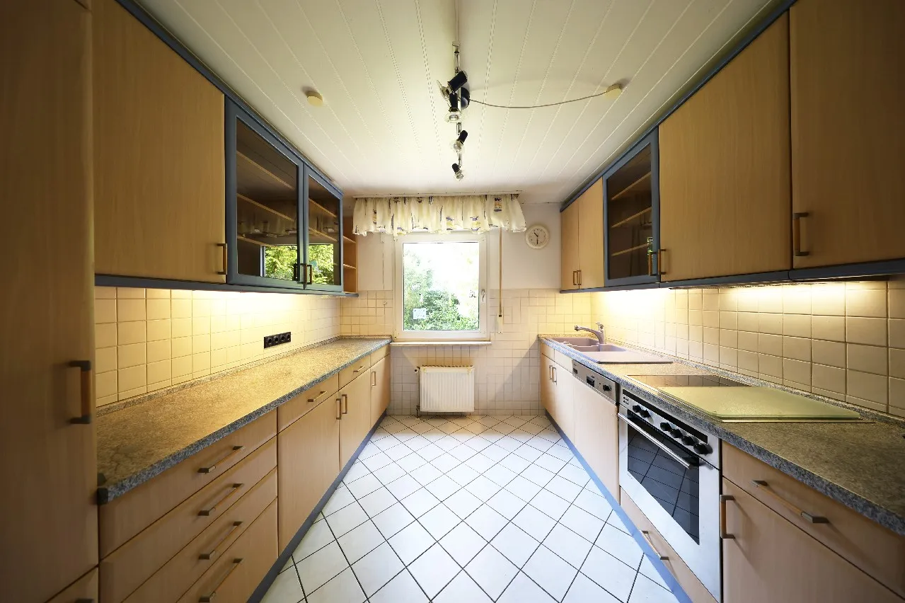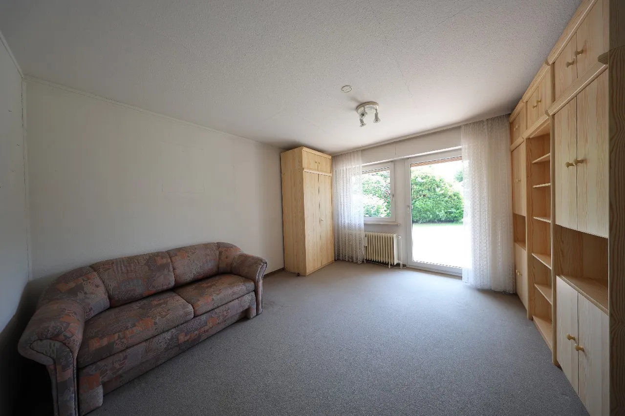 Bei dieser Immobilie steht die Grundstücksgröße und die damit verbundenen Möglichkeiten einer Grundstücksteilung im Vordergrund. Die Immobilie zeigt sich in einem für das Baujahr gepflegten Zustand. Modernisierungen sind insbesondere im Bereich der Fenster und der Heizung mittelfristig sinnvoll. Bei dieser Immobilie handelt es sich um ein Fertighaus von Zenker: