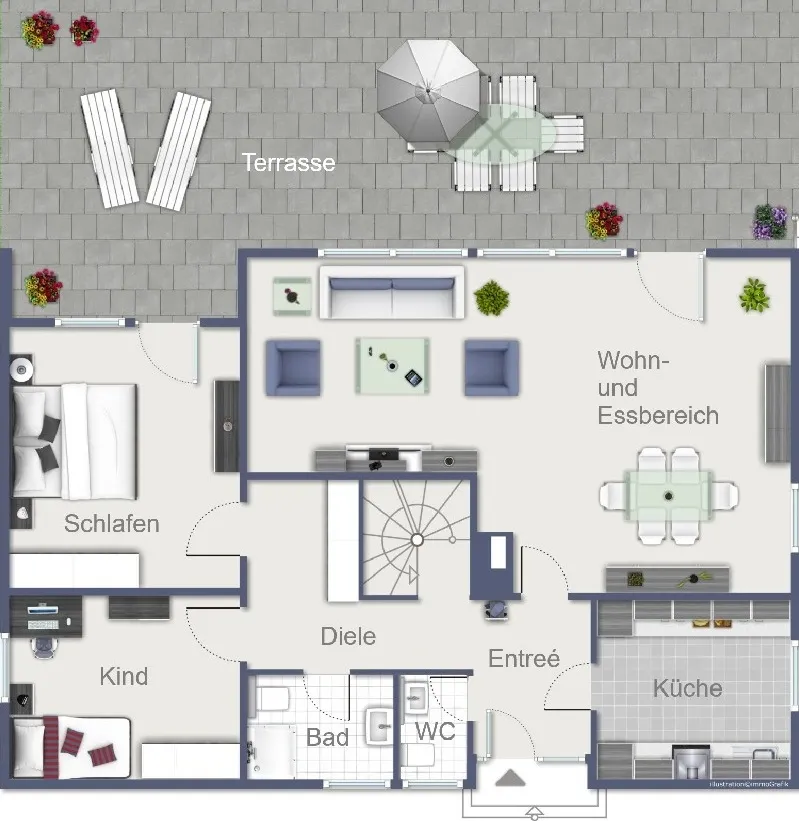 Die Aufteilung der Immobilie zeigt sich wie folgt: