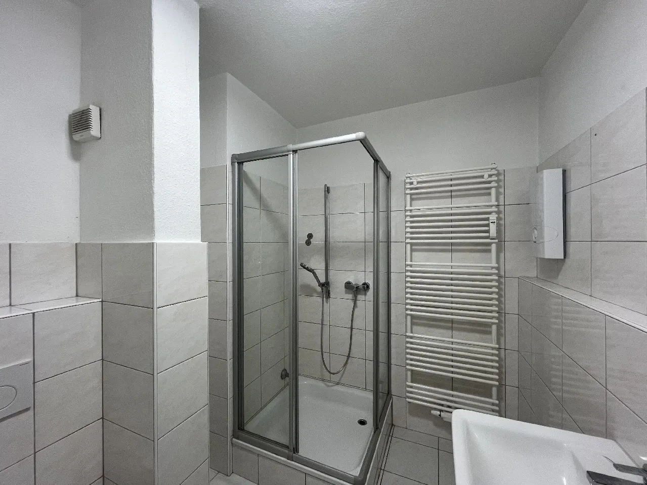 2.OG rechts, ca. 65 m² – Wohn- und Schlafzimmmer, Küche, Bad mit Dusche, Diele, Abstellraum, Balkon, Kellerraum.