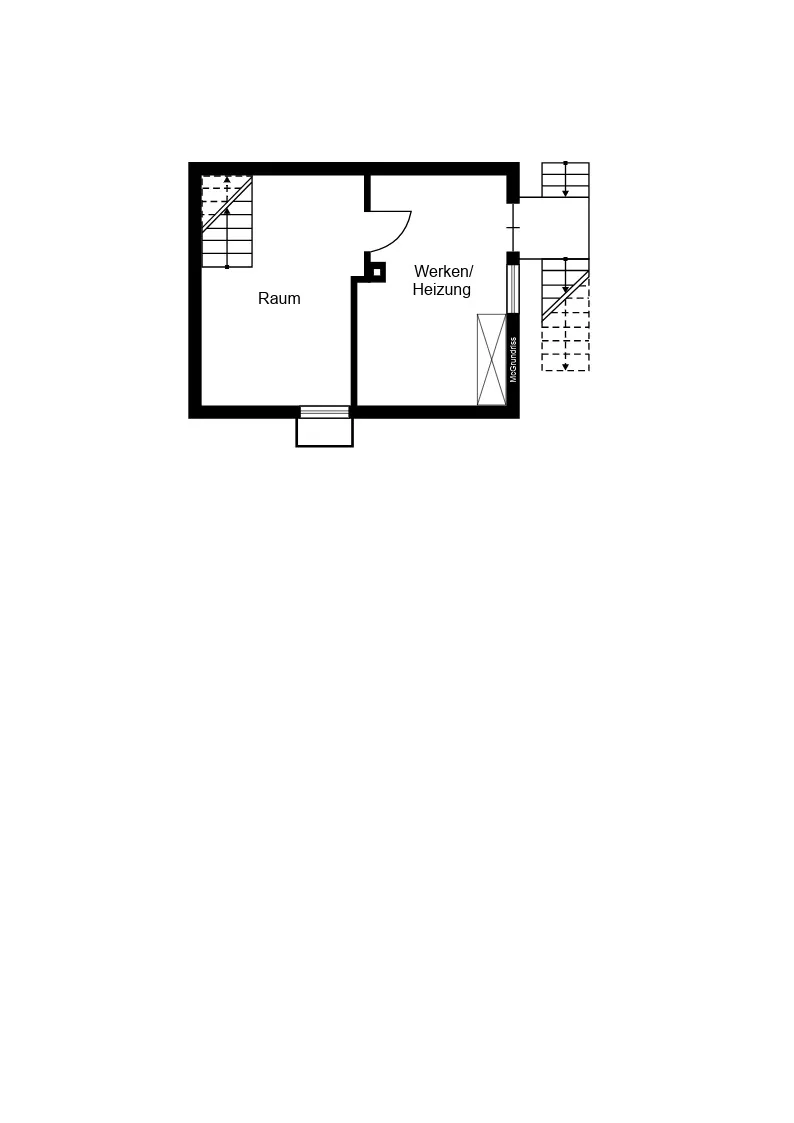 Die zweite Wohneinheit ist vollständig getrennt: Der Zugang erfolgt rechts am Haus vorbei über eine Treppe nach unten in die untere Etage. Sie ist komplett unabhängig von der zu verkaufenden Einheit und hat keinerlei Berührungspunkte im täglichen Wohnen.
